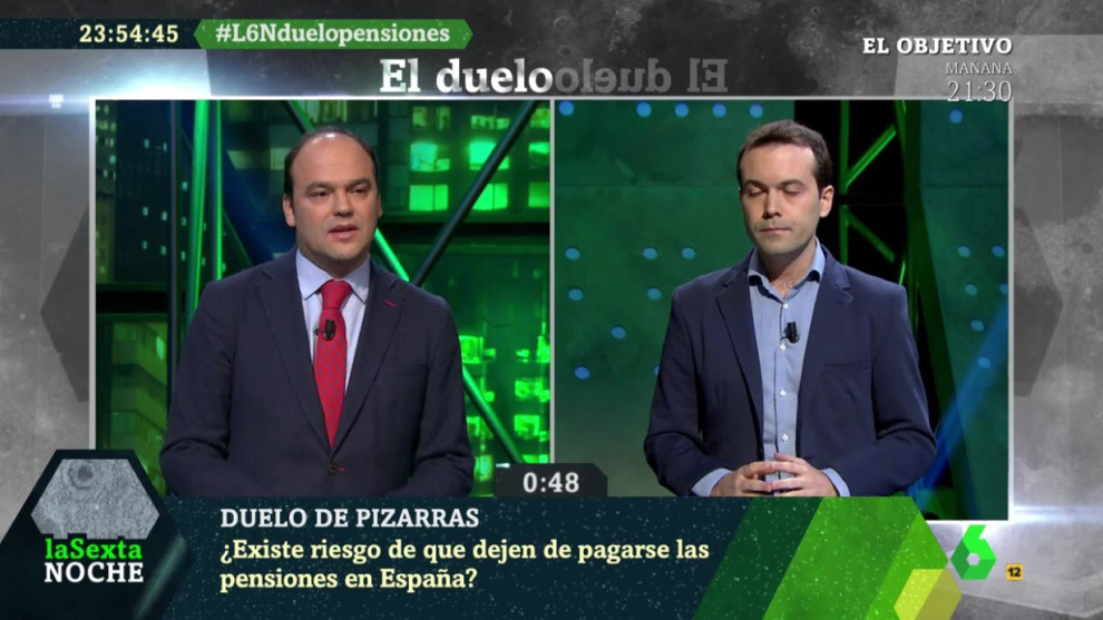 El debate se centraba en un tema escabroso y complejo: las pensiones por jubilación y su viabilidad futura. Los ilustres participantes discutían encarecidamente sobre dos ejes: Díez defiende de forma bastante tibia lo público, fundamentando sus intervenciones en medidas que giran en torno al socioliberalismo y que parecen guiadas a no enfadar mucho al capital. Ah, y si es posible, que los ancianos no trabajen hasta los 146 años. Por su parte, Rallo mantiene un esfuerzo encomiable en convencer al espectador de que lo necesario es apostar por la cultura del esfuerzo basada en el ahorro privado. Las pensiones públicas para Rallo, todo un catedrático, son insostenibles. Si tienes que trabajar hasta los 146, te jodes. No todos podemos ser Amancio Ortega, baby.