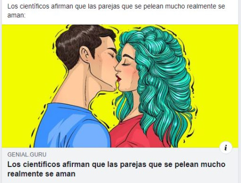 El asunto empieza con que "según encuestas recientes, el 44% de las parejas casadas creen que pelear más de una vez a la semana les ayuda a mantener relaciones saludables y productivas durante mucho tiempo". El 56% restante no se sabe lo que cree. En todo caso, "más de una vez a la semana" pueden ser dos o docenas y dependerá también de la intensidad. Pero luego matizan que hay que discutir "de manera pacífica", porque hacerlo así lleva a la pareja a un amor "verdadero y sincero".