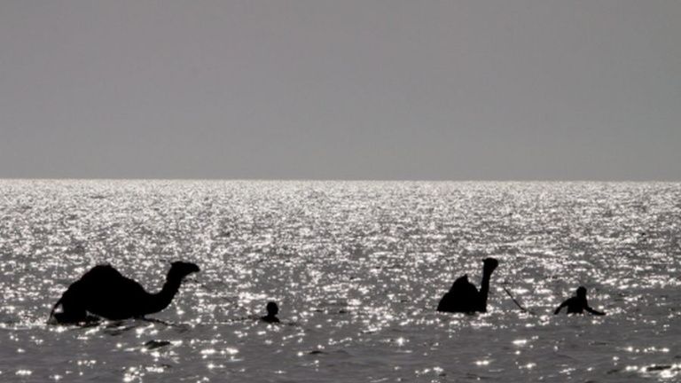 Gaza //Parece el paraíso, pero es el infierno. La idílica imagen ha sido tomada en el mar de Gaza, donde los palestinos aprovechan las fiestas para bañar a sus camellos (los palestinos que tienen camello, claro). A este lado del mar está el infierno de Gaza, que, por una vez, no ha salido en la foto. De vez en cuando está bien hacerse la ilusión de que Gaza es un lugar como cualquier otro de la costa mediterránea donde la gente se baña plácidamente y contempla en paz el atardecer.