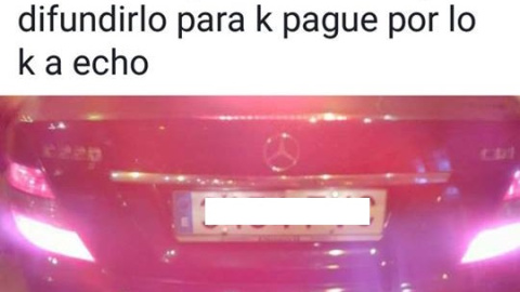 "Este coche ayer atropelló a la madre de mi amiga en Cartagena y se dio a la fuga difundirlo para k pague por lo que a echo", dice el letrero que se comparte en las redes. Y al margen de que la ortografía no parece el fuerte del autor, que el "ayer" se incluye para que el tema sea atemporal y que la frase "la amiga de mi madre" le da un carácter anónimo, esta falsa alerta es absurda.
