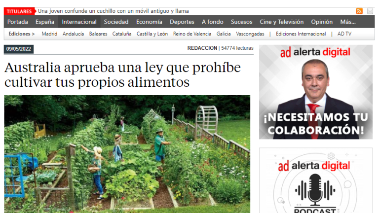 La única realidad sobre este asunto es que ni Australia ni el estado de Victoria han aprobado o van a aprobar una ley que prohíba cultivar tus propios alimentos. Eso y que informarse por Alerta Digital es tontería.