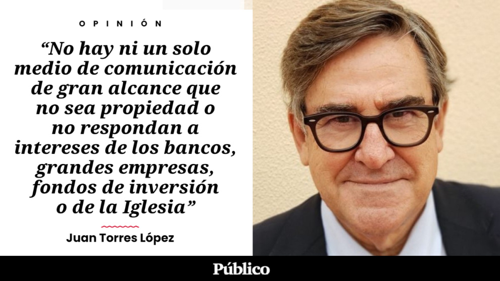 En nuestro país, como en casi todo el mundo, el sistema de comunicación social está en manos de empresas dominadas por los grandes capitales. No hay ni un solo medio, ni una televisión o radio privadas de mediano o gran alcance, que no sean propiedad o no respondan a intereses de los bancos, grandes empresas, fondos de inversión o Iglesia Católica. Ni uno solo. Y, además de ello, el Gobierno de Sánchez, siguiendo la estela que dejó el de Zapatero en su día, no solo renunció a convertir a la televisión pública en un medio de información plural e independiente, sino que se lo ha entregado a la derecha.