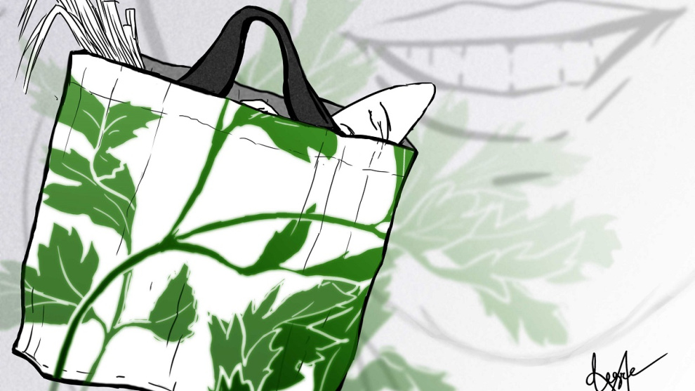 Así salgo cada día con mi bolsa de perejil en la mano, como mi madre iba con su bolso de la plaza. La lleno con los periódicos, el pan, la fruta, lo que sea. La llevo colgando de mi brazo izquierdo en el supermercado, mientras hablo con los reponedores, dependientes y cajeros, de la vida, de lo que nos ha tocado ahora, de lo bien que trabajan, de mis mascarillas caseras, me dan saludos para Javier. Siempre pequeñas conversaciones que calientan un poquito la soledad y la timidez de los súper en las grandes ciudades.