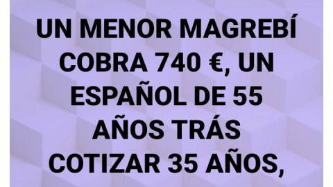 La llegada del Ingreso Mínimo Vital , que contempla pagos desde 462 a 1.015 euros, ha resucitado este bulo que afirma que "un menor magrebí cobra 740€", mientras que "un español de 55 años tras cotizar 35 años, 431€..... que me lo expliquen!!".