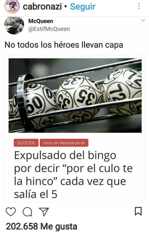 Se supone que hace unos días, "un manchego de unos 40 años fue expulsado del bingo por decir 'por el culo te la hinco' cada vez que salía el 5".
