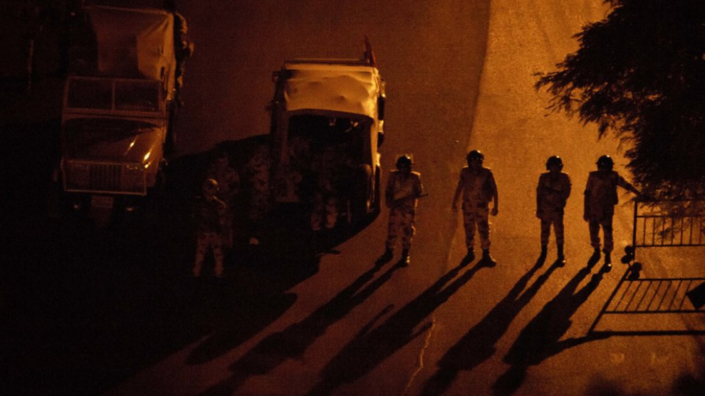 Apenas diez kilómetros separan el aeropuerto del centro de la ciudad. En ese corto trayecto, debemos atravesar ocho check-points del ejército. Jóvenes militares, ataviados con fusil, casco de combate y chaleco antibalas, repiten el tétrico ritual en mitad de una autopista a oscuras: 1) "¿Seguro que usted es periodista? ¿No será usted un espía?" 2) "Abra la maleta y enséñeme todo lo que lleva." 3) "¿Eso es una cámara? Muéstreme todas las fotografías que tiene usted en la tarjeta".