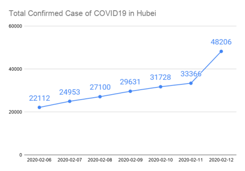 El 12 de febrero decidieron cambiar la metodología para contar los afectados por coronavirus: todo paciente que llega al hospital con neumonía es clasificado automáticamente como infectado, a pesar de que no se hayan hecho pruebas del material genético, (y por tanto no haya seguridad absoluta de que tengan el coronavirus).
