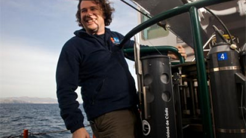 Un pequeño equipo de cinco científicos nos preparamos para hacer la primera maniobra del día: sumergir una roseta oceanográfica de media tonelada de peso para tomar muestras profundas y medir distintas variables físico-químicas de la columna de agua. No hablamos entre nosotros porque todavía no conseguimos separar los labios, casi tampoco los ojos. Es muy temprano. Nos aseguramos los cascos y vestimos los arneses de seguridad, los hay de dos tallas pero uno de nosotros no consigue diferenciarlos y se pone el pequeño. El pernil del pantalón se le sube hasta las axilas. Uff, que dolor. Éste se despierta.
