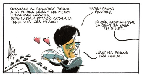 Recorte al transporte público. A la futura línea 9 de metro le quitarán paradas. Pero la administración catalana tenía una idea mejor. -¡¡Haremos que paguen un peaje!! -Es que, habitualmente, la gente ya paga un billete... -Lástima, porque era genial.