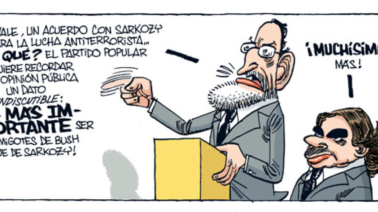Hemeroteca ColumnasTribunasViñetas Viñeta de Público09/12/2007 06:00 Comparte Encuentro Zapatero/Sarkozy