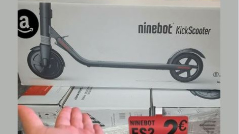 Este del patinete es uno de esos timos. Como hemos comentado otras veces, Facebook ingresa por anunciar productos y servicios, pero no comprueba si lo que dicen de ellos es cierto o no, se limita a enmascarar eso que le pagan como un "contenido sugerido" o bien directamente como "publicidad". Y bajo esta última opción, FB nos regala ahora la idea de que "El patinete eléctrico es casi gratuito, sólo para los residentes en España", que va acompañada de una foto en la que se ve la caja de un patinete y un gran letrero donde figura un precio de 2 euros.
