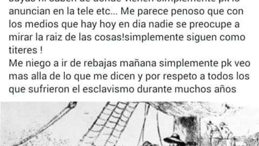 Puede que el letrero de Internet que dice que "el Viernes Negro se deriva de la esclavitud" mienta en eso, pero no le falta razón en que esta fecha no es más que otra excusa comercial para hacer caja, también antes Navidad.