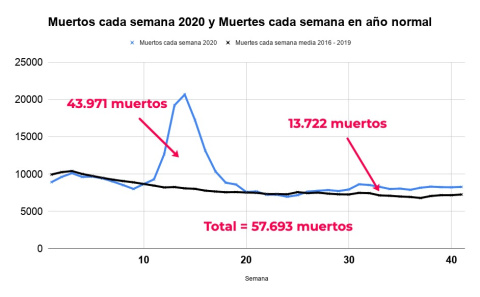 Su última actualización sitúa en 57.693 el exceso de fallecidos desde el comienzos del año 2020 hasta el 12 de octubre respecto al mismo periodo de un año normal.