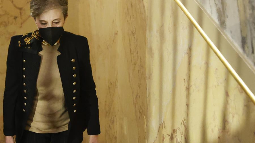La directora del Centro Nacional de Inteligencia (CNI), Paz Esteban, se dirige a comparecer ante la comisión de control de los créditos destinados a gastos reservados, este jueves, en el Congreso de los Diputados. EFE/ Juan Carlos Hidalgo