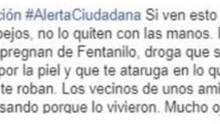 Pero no parece una exclusiva. En Colombia, frecuenciastereo.com habla de lo mismo: "Cuidado¡ si en su carro tiene esponjas, llame a las autoridades, por que puede ser Fentanilo". Y lo desarrollan: