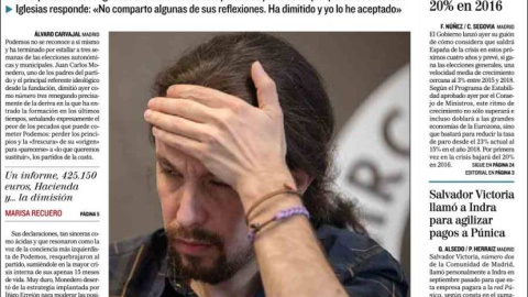 La fuga de Monedero le permite a El Mundo instalarse en un tono sermoneador muy poco pedrojotero (tan lejanos ya sus tirantes), y suena la voz editorial meliflua y curil, hasta el punto de que solo le falta prescribirle a Pablo Iglesias dos salves, tres padrenuestros y cinco avemarías. Entre psicoanalistas y confesores, no es de extrañar que Podemos baje tanto en las encuestas.