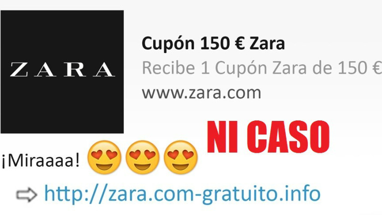 Que en esta ocasión el presunto cupón de regalo se le atribuya a Zara es una anécdota, como lo es la cuantía del cupón. Podría ser de más dinero o de menos. Los autores de estos bulos de cupones recurren siempre a marcas muy populares y no dudan en lucir sus logos oficiales y direcciones auténticas en sus intentos de estafa.