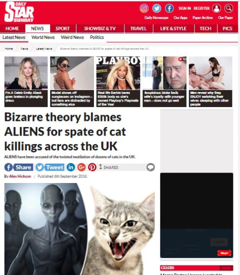 A partir de ahí ya, aunque todos coincidan en que los gatos son alienígenas, hay interpretaciones múltiples y variopintas. Como que "uno de cada tres gatos es extraterrestre" o directamente que un gato lleva en su interior a un extraterrestre que lo maneja.