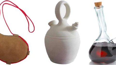 ¡Viva el vino! La BOTA surgió ante la necesidad de contar con un recipiente que resultara fácil de transportar y lo mantuviera en una temperatura estable. Elaborado mediante el tratamiento del cuero, ofrece un orificio de salida, con el que es posible beber con facilidad. El BOTIJO, cuyo ejemplar más antiguo data de la Edad del Bronce, es un recipiente de barro cocido que permite conservar el agua fresca y beber a través de un pitorro, mientras el aire entra a través de la boca por donde se rellena el agua. El PORRÓN, una modificación del anterior, es una botella de cristal con dos tubos: uno para la entrada del líquido y el aire y otro para la salida del líquido, que generalmente es vino.