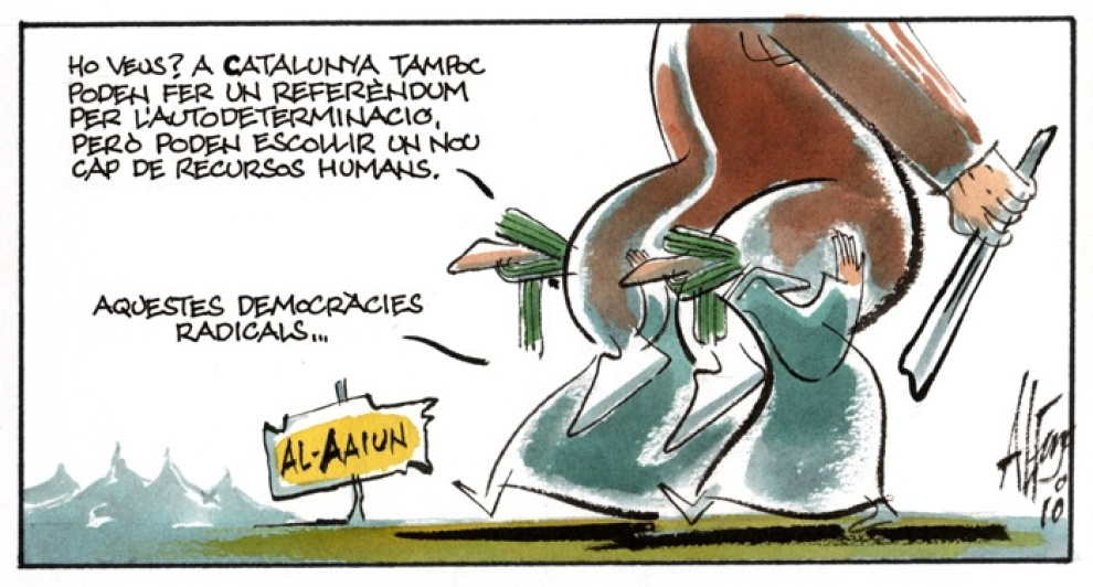 -¿Lo ves? En Cataluña tampoco pueden hacer un referéndum por la autodeterminación, pero sí pueden elegir un nuevo jefe de recursos humanos. -Estas democracias radicales...