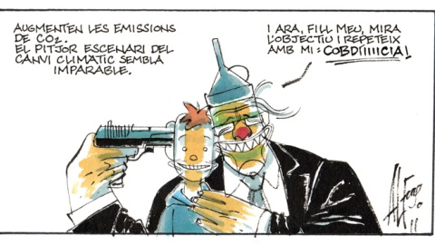 Aumentan las emisiones de CO2. El peor escenario del cambio climático parece imparable. -Y ahora, hijo mío, mira al pajarito y repite conmigo: ¡CODIIIIICIA!