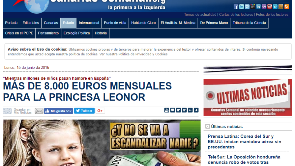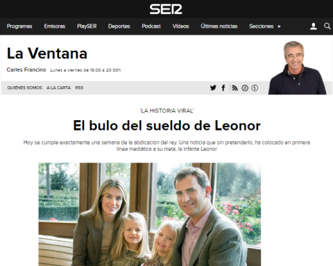 Aunque los que no lo creyeron entonces continúan sin creerlo ahora, y siguen difundiendo esa noticia sobre el sueldo de Leonor, que ya ha cumplido 12 años. Por ejemplo, la misma información que causó tanto revuelo en 2014 puede encontrarse en una publicación de febrero de 2016 en un blog atribuido al político peneuvista Iñaki Anasagasti, o en Instagram hace solo unos días.