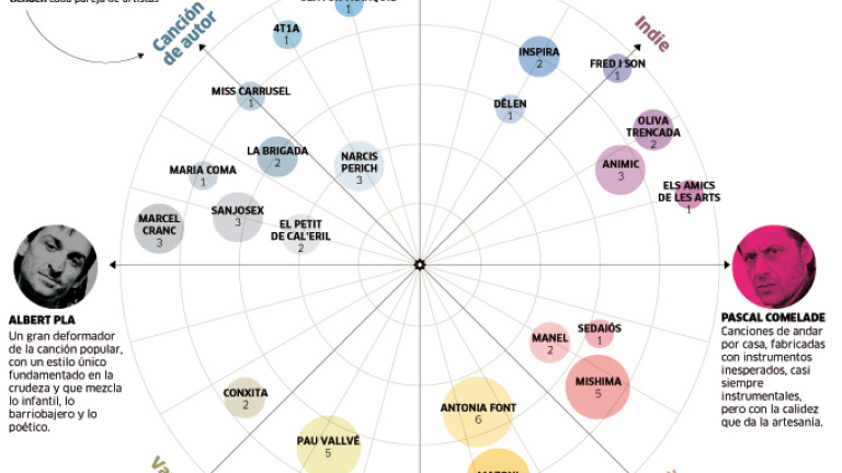 Pero ni todo empieza en Manel ni por supuesto acaba en ellos. Artur Galocha, que es gallego, y un servidor, leonés, creyendo que las cosas se perciben de forma más real cuando se ven desde fuera, nos entretuvimos la semana pasada tejiendo un mapa del pop con grupos actuales que cantan en catalán.