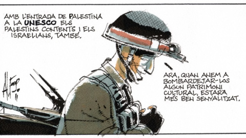 Con la entrada de Palestina en la UNESCO, los Palestinos, contentos, y los israelíes, también. —Ahora, cuando vayamos a bombardearles algún patrimonio cultural, estará mejor señalizado.
