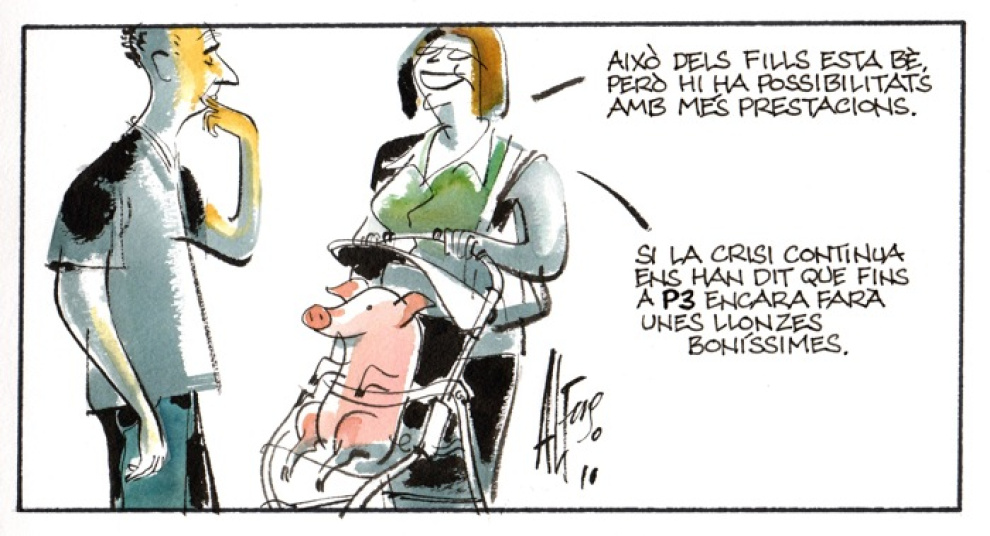 -Esto de los hijos está bien, pero hay posibilidades con más prestaciones. »Si la crisis continua, nos han dicho que hasta P3 aún hará unas lonchas buenísimas.
