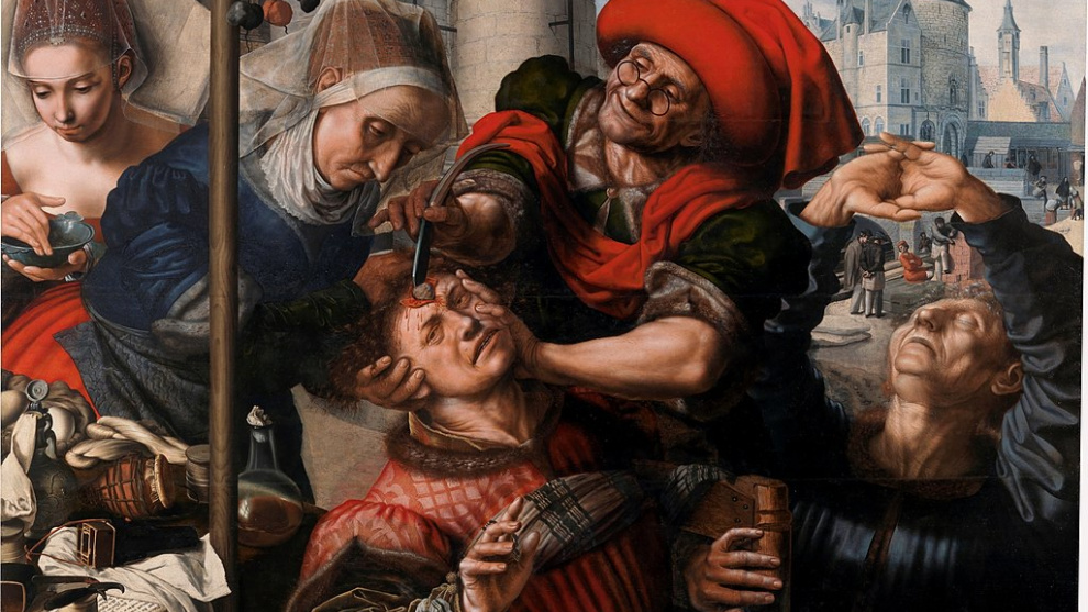 Almirábalo too, porque creyía en too; porque’l médicu de so ma fixéralu supersticiosu de la relixón de los específicos, de les cures segures, pero lentes, carísimes. Y D. Benito, y la so xente, pola cuenta que-yos trayía, y por amor al arte, y por ver al probe carpinteru ablucáu énte tantos prodixos, remachaben el clavu describiéndo-y les cures maraviyoses d’estes y les otres drogues, de tal vinu, de talos granos y del estractu X. Pero... lo de siempre: yera too percaro, facía falta aneciar, emplegalo davezu per munchu tiempu…; ye dicir, too esixía que Bernardo, pa curar a so ma con aquelles coses, gastase nun mes lo que ganaba nun añu...