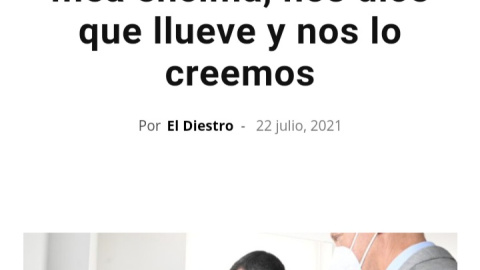 Son algunas otras 'noticias' que luce ahora esta web. En cuanto a la que nos ocupa -"Pedro Sánchez nos mea encima, nos dice que llueve y nos lo creemos"-, el título daría de hostias a cualquier metodología periodística. Al margen de que no informa de nada, no la firma nadie con nombre y apellidos, sino "El Diestro", así que una columna de opinión no puede ser. Podría ser un editorial, pero tampoco. Es más una arenga, y eso no es un término periodístico.