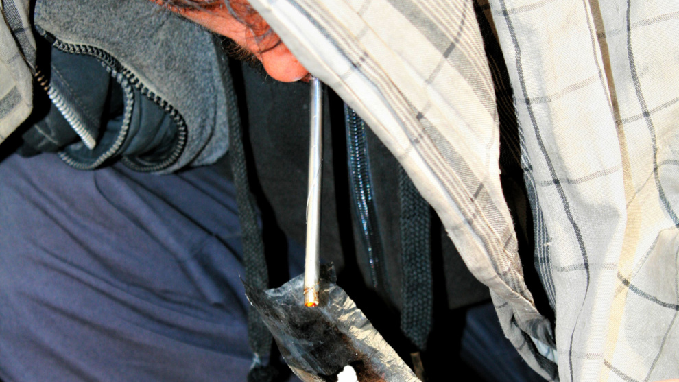 Se levanta el ennegrecido calcetín de dónde saca un pequeño ‘saquito’ bien atado con una goma elástica. Lo abre con delicadeza, como si fuera un padre primerizo que tiene entre sus brazos a su hijo recién nacido. Del bolsillo saca un pedazo de papel plateado y una cajetilla de tabaco. Coloca la heroína sobre el papel y prepara un cigarrillo, un tubo hueco y un mechero. Las manos le tiemblan. El ansia puede con él. Respira hondo. Con la mano derecha sujeta un cigarrillo entre los dedos y con la derecha el pedazo de papel mientras con la otra enciende el mechero y lo coloca bajo el papel…