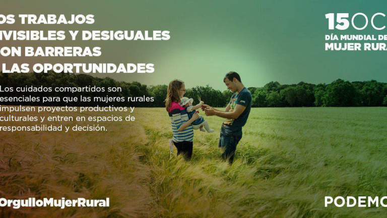 Desde Podemos nos unimos a todas las mujeres que a través de sus organizaciones, colectivos, asociaciones, o de manera individual, han celebrado en estos días el orgullo de ser mujeres rurales. Todas las que diariamente viven, cuidan, trabajan, y luchan por seguir reivindicando su ruralidad, tejen una inmensa red de sororidad de la que debemos aprender. En estos días nos reconocemos y nos reivindicamos todas como mujeres rurales.
