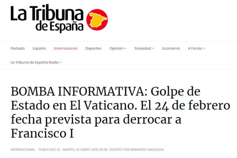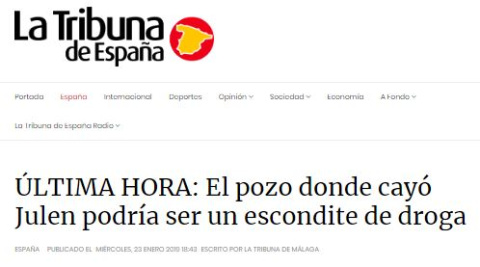 Obviamente "las violaciones cometidas por musulmanes" no "dejarán de ser delito en Europa", como se ve en una de las capturas de esta entrada. Tampoco suena muy lógico hacer en Totalán un pozo de más de cien metros de profundidad y poco más de veinte centímetros de diámetro como "escondite de droga". Son solo un par de ejemplos de lo complicado que resulta no encontrar noticias falsas y de ciencia ficción en las páginas de este personaje, como lo de "derrocar al Papa el próximo 24 de febrero", que a ver si va a ser el 29. Ya veremos.