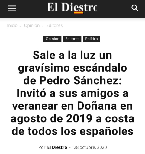 La página El Diestro lleva ubicando al presidente en el Parque Nacional andaluz desde siempre. De hecho, el 18 de junio de 2020 ya desmentimos que el socialista viajara entonces al Palacio de las Marismillas, en Doñana, con su esposa, Begoña Gómez.
