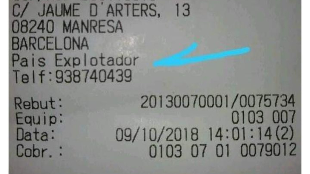 La captura de un tique de aparcamiento del Hospital Sant Joan de Déu de Manresa en el que puede leerse "país explotador" en el lugar donde se supone que debería figurar "España", está dando muchas vueltas por Internet y ha cuajado en determinados medios de similar palo, que lo han interpretado como un nuevo ataque de los independentistas catalanes al Estado español.