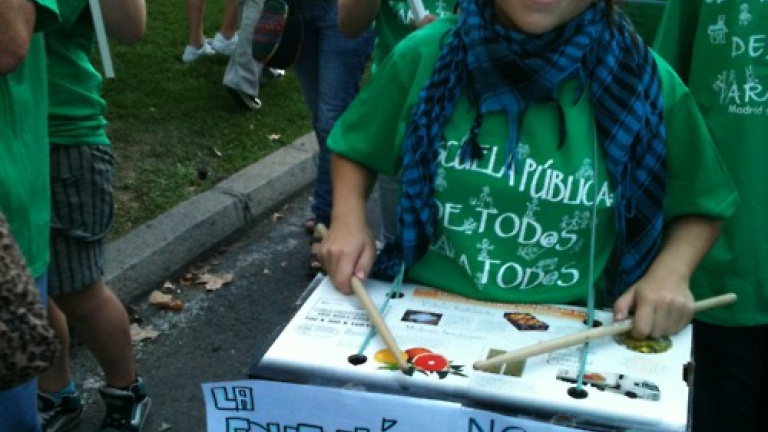 Últimamente vemos mucho movimiento en las calles: manifestaciones, encierros, asambleas, protestas. Pienso especialmente en el 15-M que arrancó con la acampada en Sol (“¿lo conocéis?” Muchos chicos sí lo conocen) y la Marea Verde. Son movimientos que de diferentes maneras defienden lo público, el derecho a la sanidad, a la educación, etc. ¿Qué significa esto? Defender lo público es defender el derecho de cualquiera a ser educado, a ser curado, a poder desplazarse, independientemente de su condición, del dinero que tenga, de su origen social o de cualquier otro discriminante.