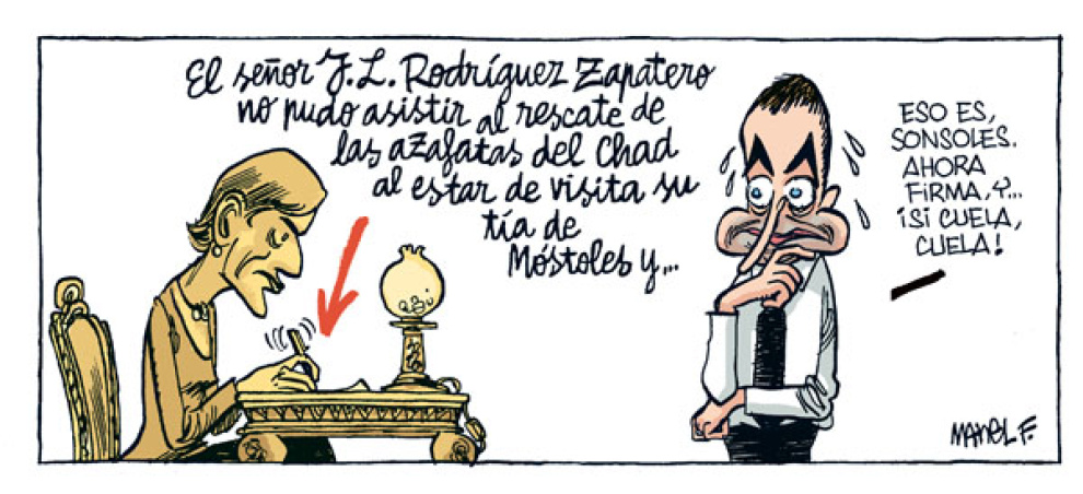 Hemeroteca ColumnasTribunasViñetas Viñeta de Público05/11/2007 06:00 Comparte Sarkozy al rescate en el Chad