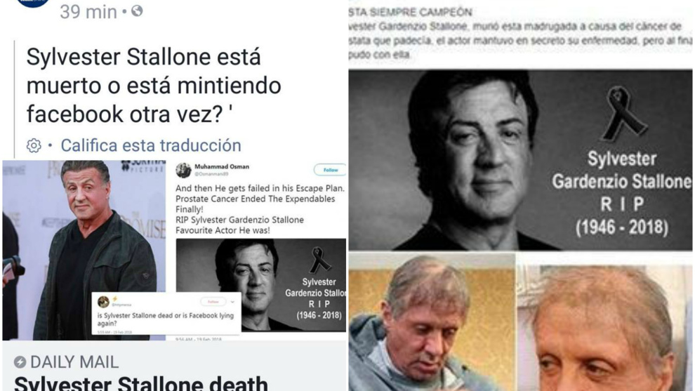 Las redes sociales y varios medios de distintos países han matado esta semana al actor estadounidense Sylvester Stallone, al que antes de fallecer se le veía aparentemente muy deteriorado en unas fotos, en las que realmente está maquillado y caracterizado, no enfermo.