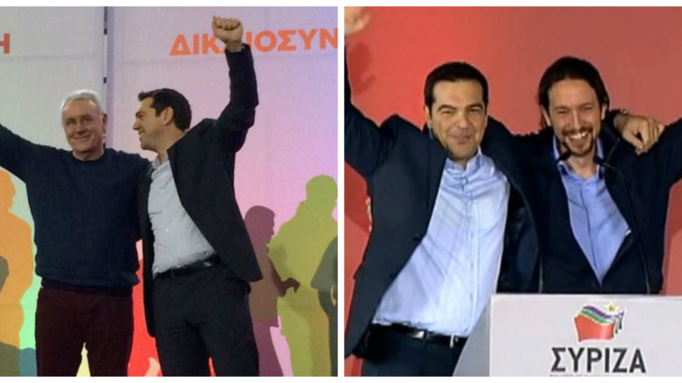 Tanto IU como Podemos apoyaron a Syriza durante las elecciones. Cayo Lara participó en el mitin de Tsipras en Tesalónica. Pablo Iglesias cerró el mitin de Tsipras en Atenas.