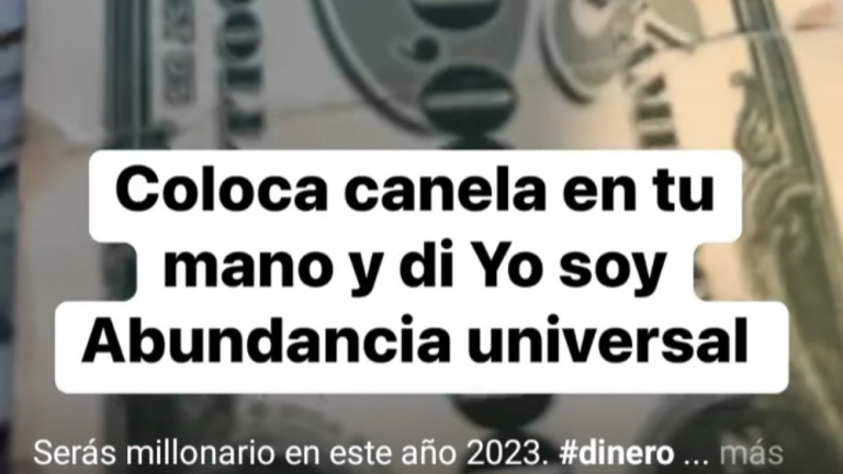 "Serás Millonario. Este es tu año. Coloca canela en tu mano y di Yo soy Abundancia universal".