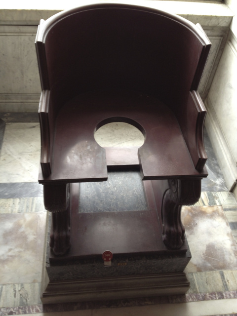 Esta versión nunca la ha confirmado la Iglesia, ni lo hará, y eso que existe una silla, llamada sedia stercoraria, que se asemeja a un váter pero presuntamente tenía otra función. Porque su agujero central, dicen muchos, estaba ahí para favorecer el tocamiento de los testículos del inminente nuevo Papa y que no pasara como con "la Papisa Juana", una mujer inglesa o germana que, según las leyendas, en el siglo IX consiguió pasar por hombre hasta llegar a convertirse en Papa.