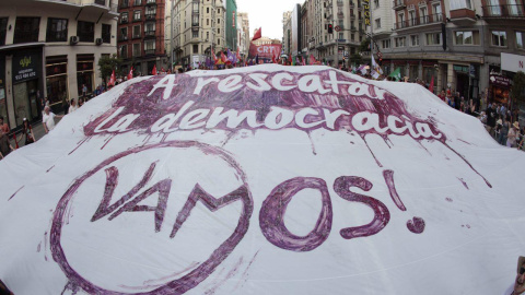 Para afrontar esta cuestión, se deben aplicar soluciones democráticas, no soluciones judiciales, como viene haciendo el Gobierno de Mariano Rajoy. Resulta prioritario establecer un espacio de diálogo, generar un marco en el que la gente pueda expresar su opinión y decidir de forma democrática. No creemos que un referéndum unilateral sea la solución, queremos un acuerdo en el que la gente de Cataluña se pueda expresar libremente, porque confiamos en ellos y en que quieran tener un proyecto de convivencia con el resto de los pueblos de España. Nosotros sí confiamos en eso, sí creemos que es posible abordar ese proyecto de convivencia. El problema que tenemos en estos momentos es que las élites políticas y económicas que controlan las instituciones no tienen un proyecto de país que ofrecer, su único proyecto es el saqueo de lo común, y si eso no cambia se van a querer independizar hasta los de Valladolid.