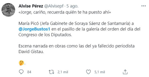 El pobre Bustos es que no sabía ni cómo denunciar los tuits de Alvise sin darle publicidad a la información que a él atañe, que, como veis, no carece de cierta chicha morbosera. Es de lo que viven ambos.