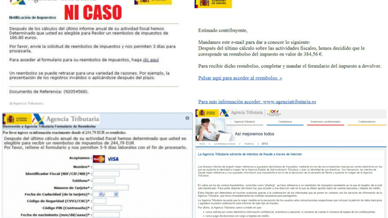 Desde que se abre el plazo para presentar la declaración de la renta, a primeros de abril, hasta que se va agotando, a finales de junio, proliferan los emails que presuntamente envía la Agencia Tributaria para comunicar a sus contribuyentes que necesitan sus datos para devolverles tal cantidad de dinero o cualquier otra cosa.