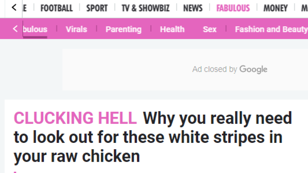 La noticia que desaconseja comer carne de pollo con exceso de rayas blancas no puede considerarse falsa. Aunque se ha exagerado y tergiversado montones de veces y, sobre todo, la interpretan unos y otros de diferentes maneras según sus intereses.