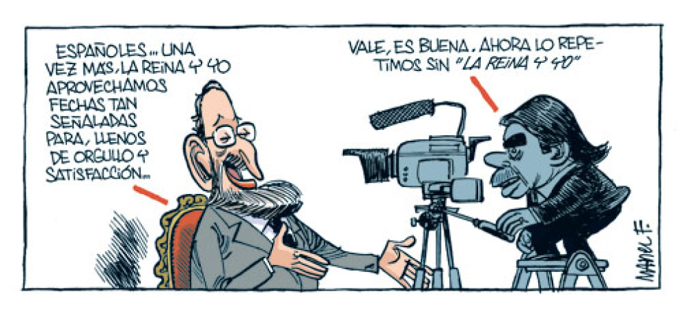 Hemeroteca ColumnasTribunasViñetas Viñeta de Público11/10/2007 01:09 Comparte El vídeo patriótico de Rajoy