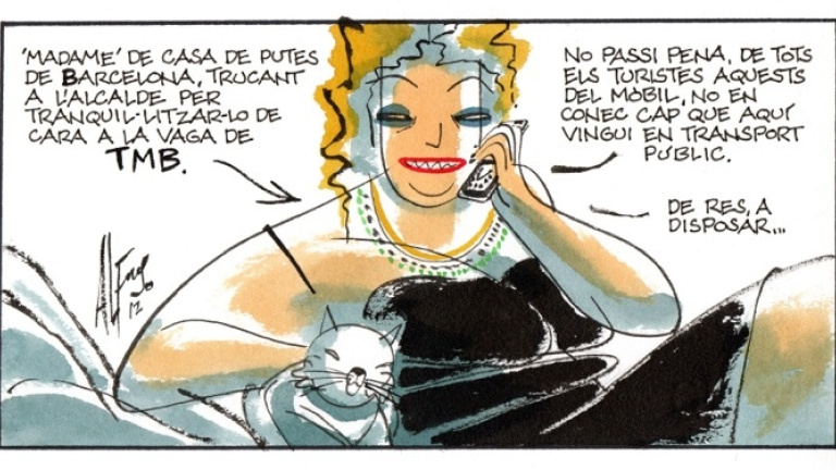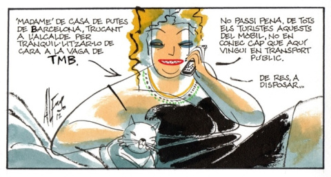 "Madame" de casa de putas de Barcelona, llamando al alcalde para tranquilizarle al respecto de la huelga de TMB. –No se apure, de todos los turistas estos del móvil, no conozco a ninguno que venga aquí en transporte público. »De nada, a mandar...