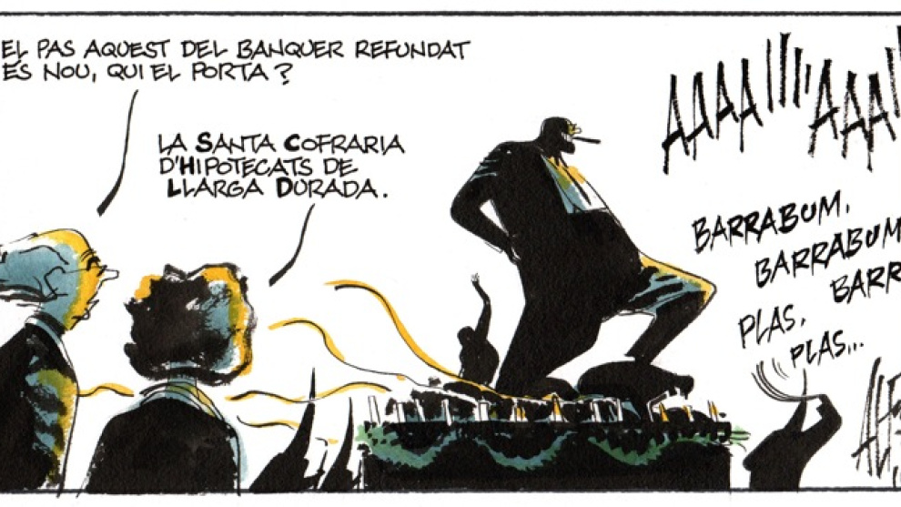 -El paso éste del Banquero Refundado es nuevo, ¿quién lo lleva? -La Santa Cofradía de Hipotecados de Larga Duración.