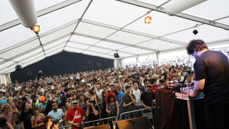 Yo siempre voy sola al Sónar, pero inevitablemente me encuentro con amigos. Solemos ser siempre los mismos, y aunque yo voy primordialmente a pasear, a observar, a bailar y a pasármelo bien, algunos de ellos son auténticos profesionales. Quiero decir que yo casi nunca sé a qué grupo voy a ver ni quiénes son los que están en ese momento sobre el escenario, y en cambio ellos los conocen a todos por nombre, procedencia y características musicales. Yo me dejo llevar, y la verdad es que me llevan muy bien. Ayer empezamos con los suecos Little Dragon, suavecitos para ir entrando en el tema, bajo el sol de justicia de las 4 de la tarde, sólo atenuado por la sombra de algún arbolito del Village. Por cierto, qué bien se baila ahí, en el Village, descalza, sobre la hierba artificial. Eso, a primeras horas, porque luego está el suelo lleno de vasos de plástico y colillas de cigarrillos y cigarritos, cuyo perfume oloroso extiende la brisa alimentando al público. Y que conste que los servicios de limpieza trabajan duro y sin cesar. De allí pasamos, después de agenciarnos un mojito, al Dome (cómo se agradece la carpa) y después al Hall, donde los británicos Pram me dejaron boquiabierta, sobretodo porque su lideresa sirve para un barrido y para un fregado, y tanto se atreve con el acordeón como con la guitarra, la flauta travesera, el violín o lo que sea. La verdad es que estuvieron bien, porque además las imágenes de fondo eran muy sugerentes. El único problema era el calor sofocante del Hall, ese enorme y oscuro recinto que alberga centenares de espectadores; hacía tanto calor que, al volver al Village y a pleno sol, nos parecía que hacía fresquito. Enseguida se nos pasó, porque bailamos con el hiphop local de Chacho Brodas que, aunque son de aquí, parecen talmente recién llegados de L.A. o del Bronx neoyorquino.